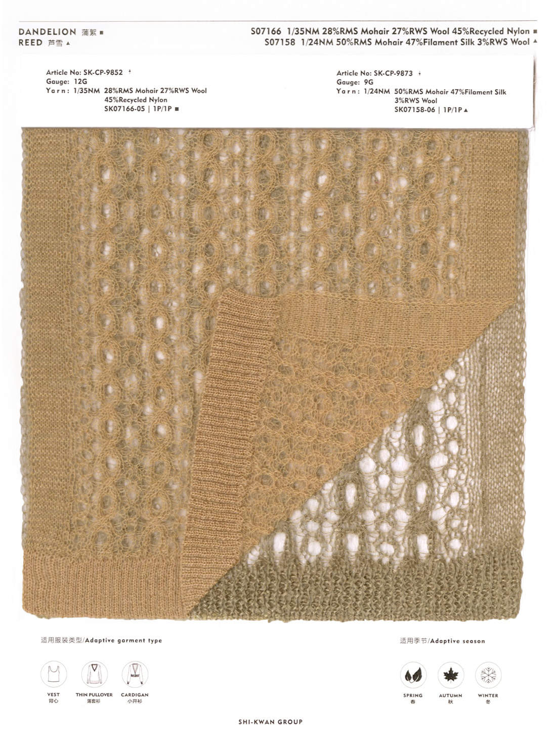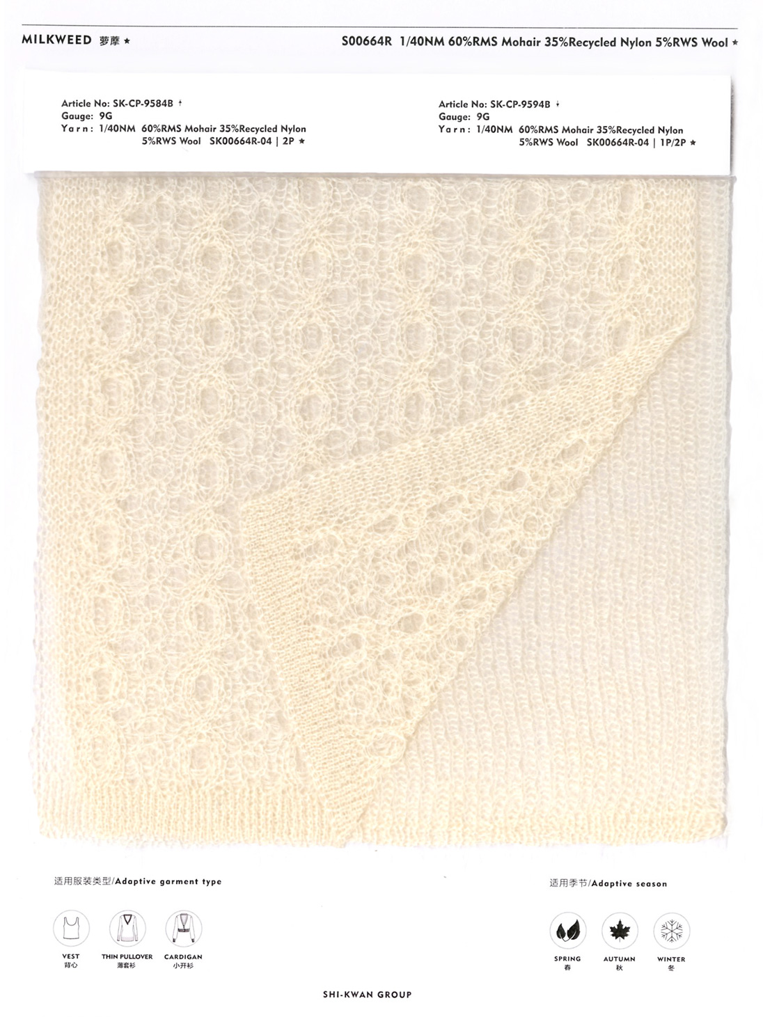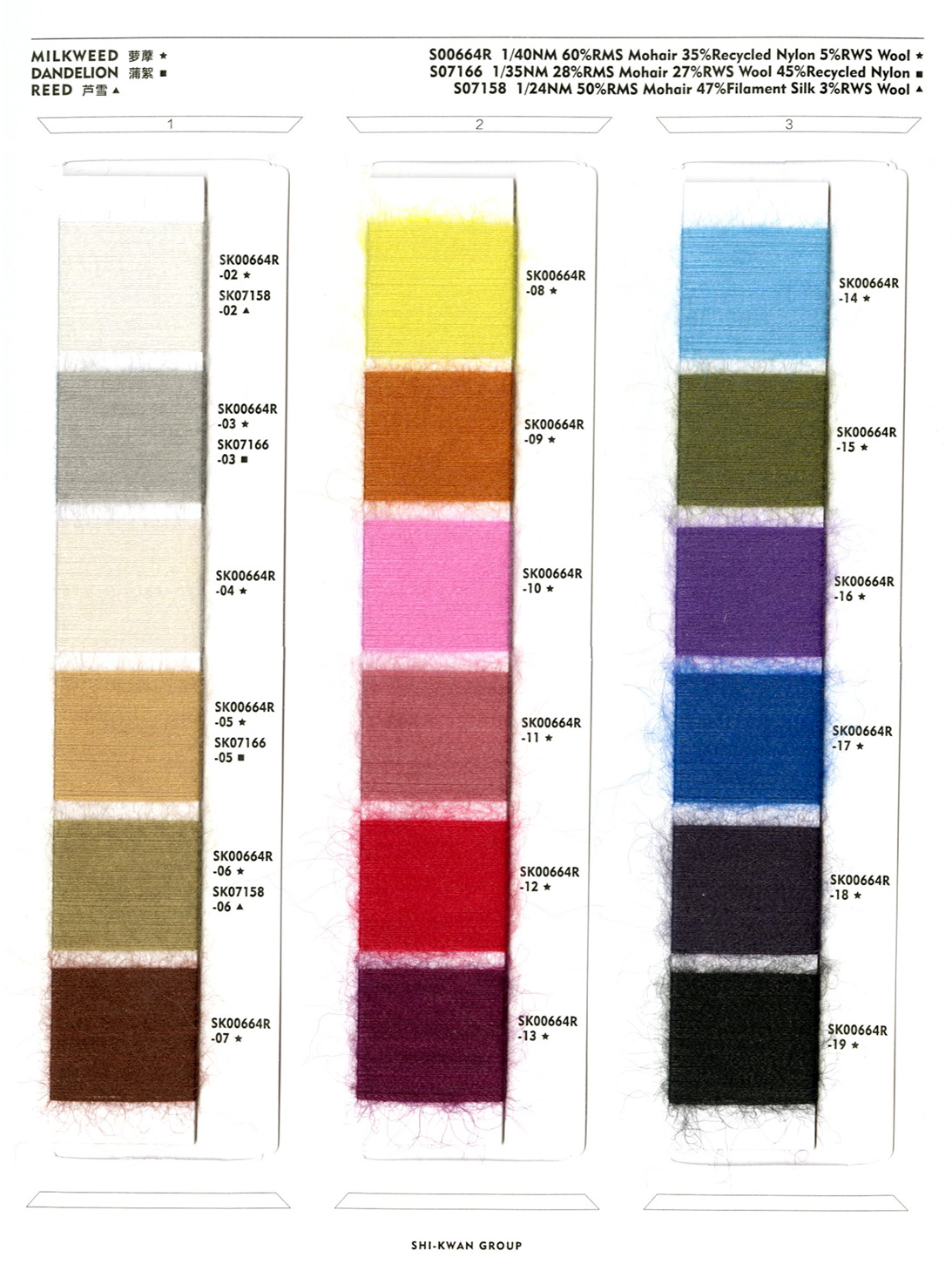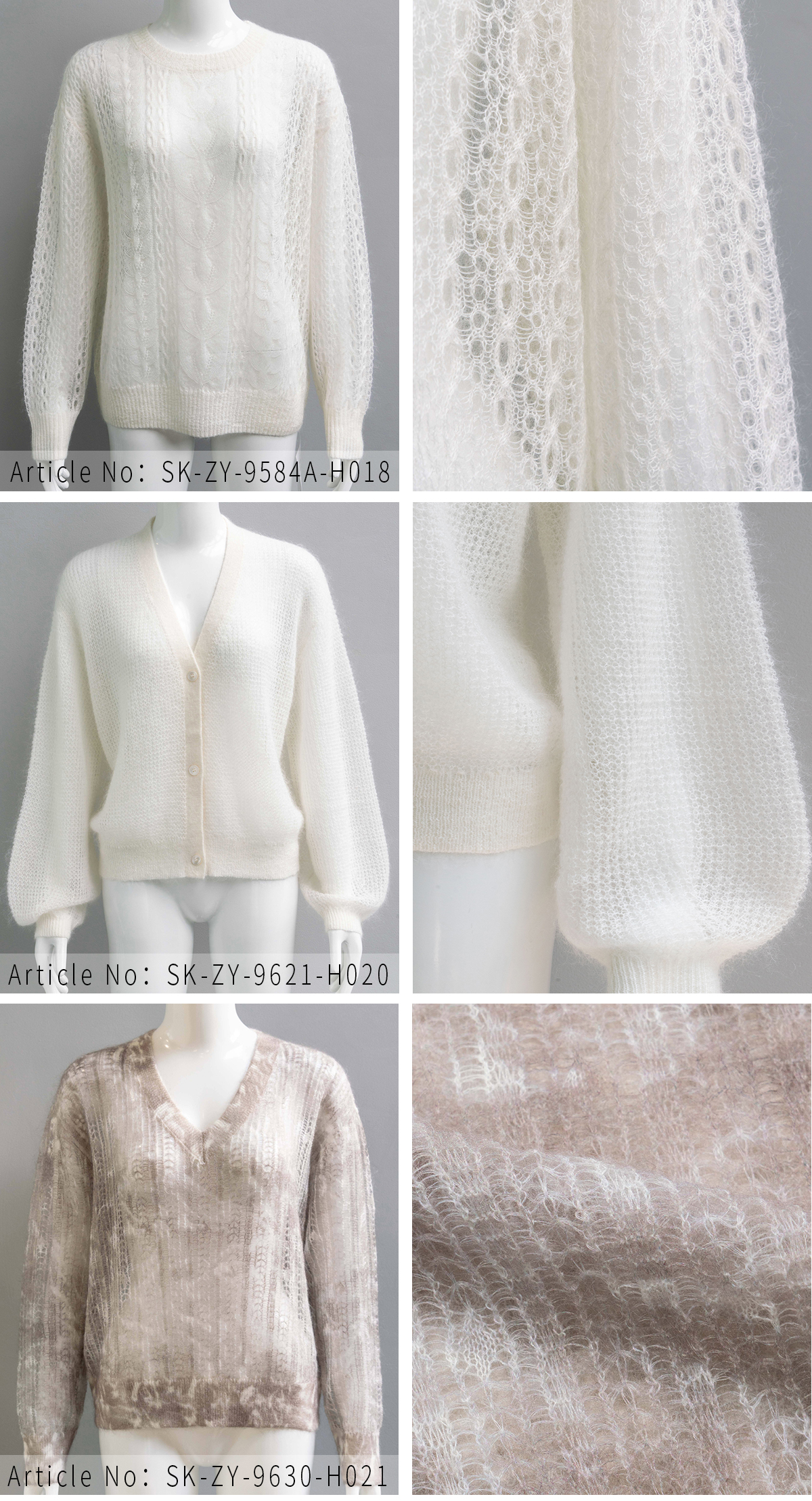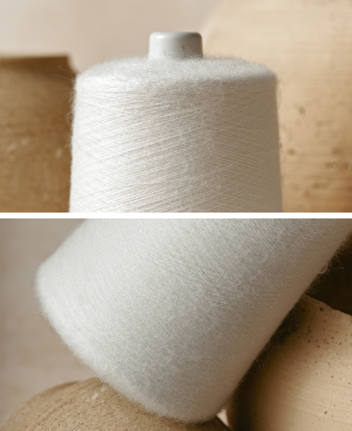 This series of yarns is spun with imported equipment and special processes. It uses South African superfine mohair as the core material, combined with superfine Merino wool to provide excellent warmth and natural resilience. Recycled Nylon is added to offer structural support, ensuring the knitdown is soft yet crisp. The yarns feature a plush texture and a fine velvet surface, combining the soft and smooth touch of clouds with lightweight breathability. The unique fiber memory ensures that the garments quickly regain their fluffy and three-dimensional shape, making them easy to maintain over time.